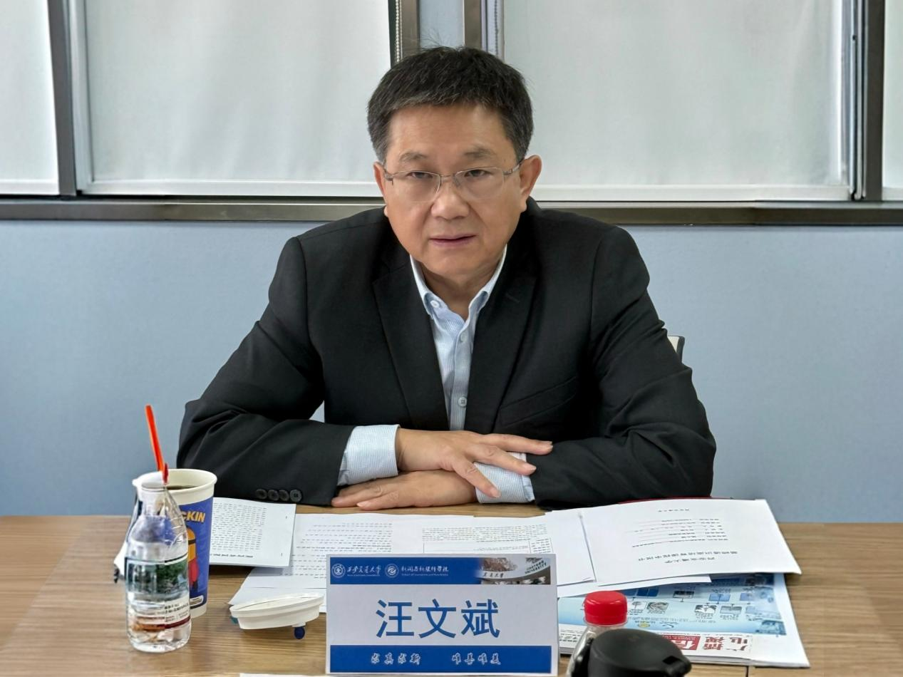 院长汪文斌、领军学者阚平、院长助理范晓莹、新闻系主任徐婧、智能传播系党支部书记杨帆、青年优秀人才王豪、产教融合秘书吴薇参加会议。座谈由汪文斌主持。