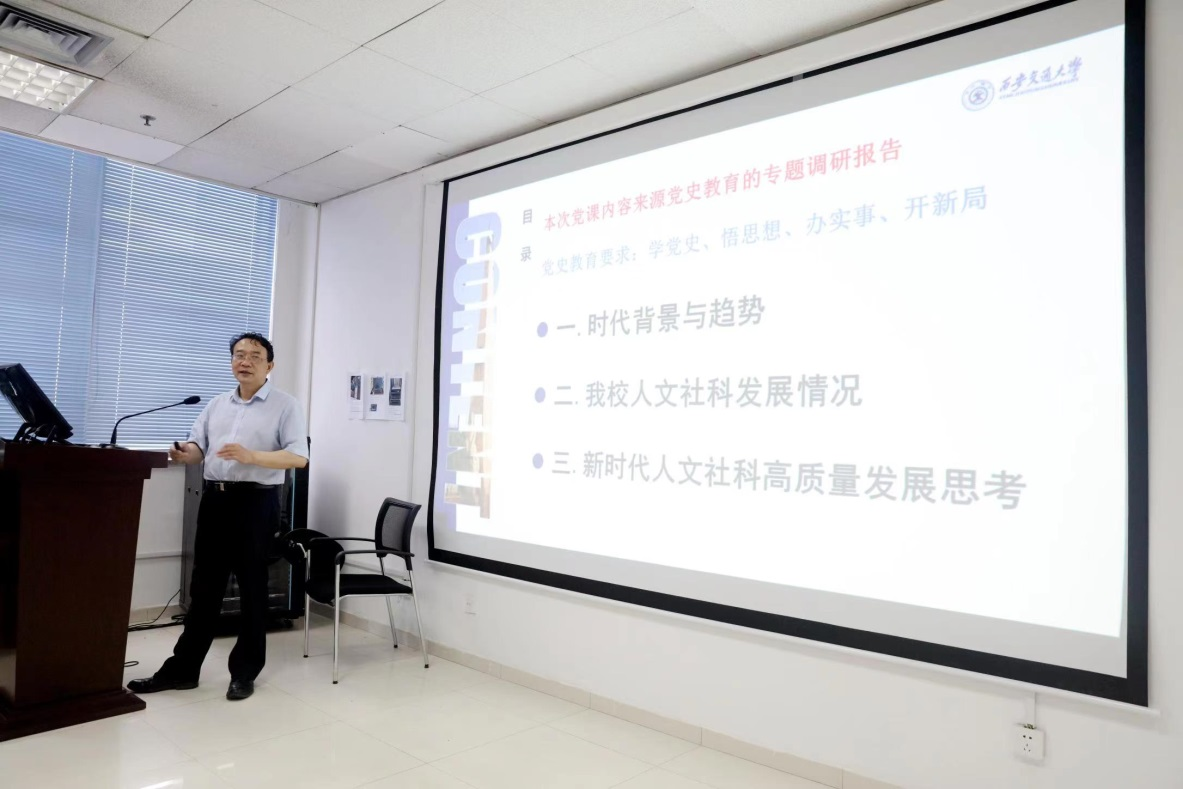 6月25日,新媒体系党支部举行了“学党史、强信念、推动学科内涵发展”为主题的“校党委常委进支部活动”。西安交通大学党委常委、副校长席光出席活动并讲授党课,西安交通大学党史学习教育领导小组办公室材料简报组副组长、医学部法医学院党委副书记陈晨、校党委组织部主管刘小溪以及成人直播