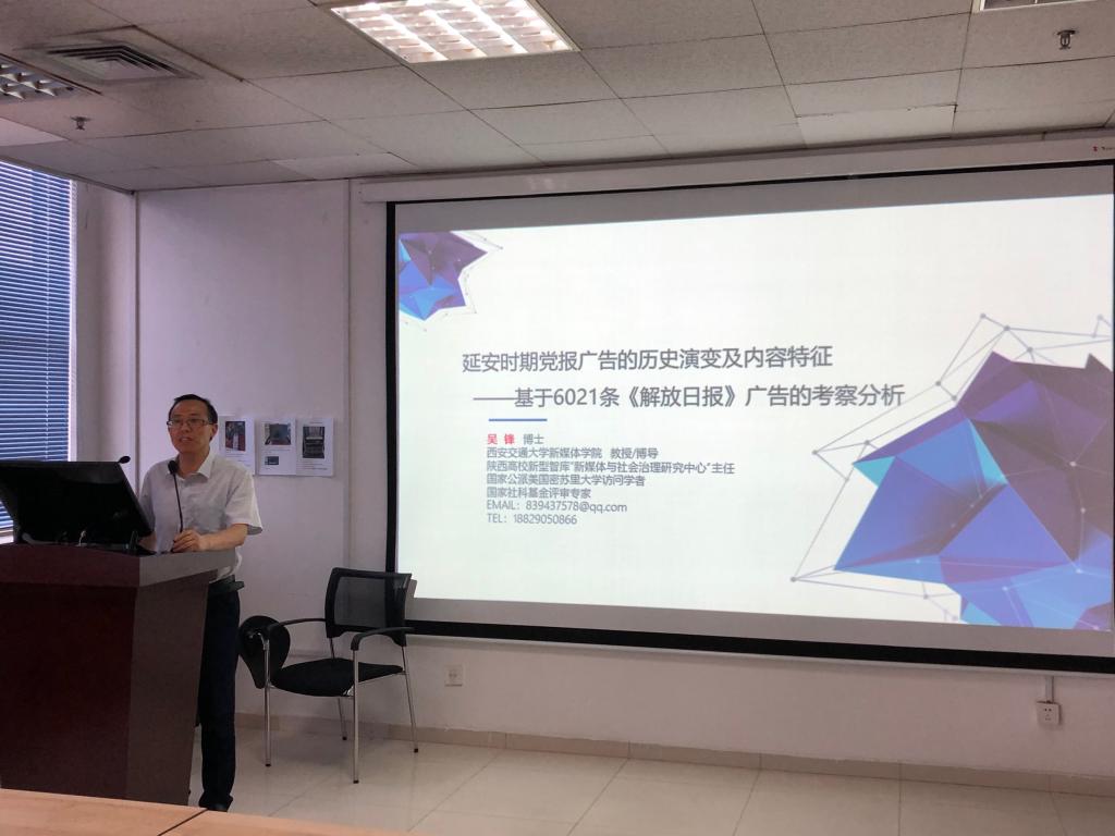 为全面真实再现延安时期《解放日报》历史面貌,吴锋教授立足原始资料,为支部成员讲述了延安时期《解放日报》的广告历史演变与内容特征。他认为,《解放日报》广告发展经历了四个重要阶段,广告经营方式实现了从单一到多样、从简单到详细的演变过程;《解放日报》广告版面的演进也记载了党报办报理念与版面不断改革的进程;在内容特征上,《解放日报》广告内容丰富,在一定程度上反映了当时的经济社会发展变化。