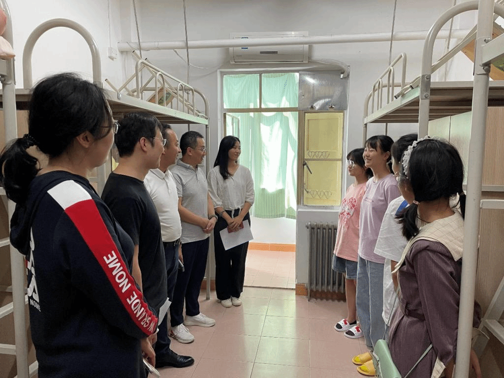 在看望本科生新生时,韩博副书记详细询问了同学们的住宿条件和生活适应情况,希望同学们在后疫情防控时期继续保持良好的生活习惯,尽快适应新的宿舍生活。张宏邦副院长介绍了成人直播