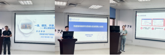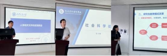 人力资源部副部长费强,社会科学处副处长张日鹏,实验室与资产处副处长陈哲,研工部副部长薛周利,研究生院培养办主任程洁,财务处核算科主管吴婷作主题培训,成人直播